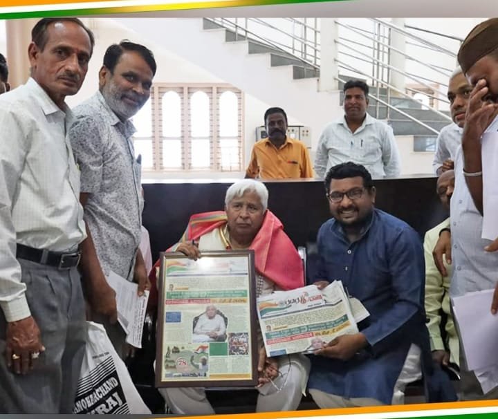 ಗದಗ ವಾಣಿ ದಿನಪತ್ರಿಕೆಯ ವತಿಯಿಂದ ಮಾನ್ಯ ಶ್ರೀ. ಎಚ್ ಕೆ ಪಾಟೀಲ್, ಉಸ್ತುವಾರಿ ಸಚಿವರು ಮಾನ್ಯ ಕಾನೂನು, ನ್ಯಾಯ, ಮಾನವ ಹಕ್ಕುಗಳು, ಸಂಸದೀಯ ವ್ಯವಹಾರ, ಶಾಸನ ರಚನೆ ಹಾಗೂ ಪ್ರವಾಸೋದ್ಯಮ ಸಚಿವರ 78 ನೇ ಜನ್ಮದಿನದ ಪ್ರಯುಕ್ತ ದಿನಪತ್ರಿಕೆಯಲ್ಲಿ ವಿಶೇಷ ಲೇಖನದೊಂದಿಗೆ ಮಾನ್ಯ ಸಚಿವರಿಗೆ ಶುಭಾಶಯಗಳನ್ನು ಹೇಳಲಾಗಿತ್ತು. ಇಂದು ದಿನಪತ್ರಿಕೆಯ ಸಂಪಾದಕರಾದ ಮಂಜುನಾಥ್ ರಾಥೋಡ್ ಅವರು ಮಾನ್ಯ ಸಚಿವರಿಗೆ ಭೇಟಿಯಾಗಿ ಜನ್ಮದಿನೋತ್ಸವದ ವಿಶೇಷ ಲೇಖನದ ಪ್ರತಿಯನ್ನು ಫೋಟೋ ಫ್ರೇಮ್ ಮಾಡುವುದರ ಮೂಲಕವಾಗಿ ನೆನಪಿನ ಉಡುಗೊರೆಯನ್ನು ಕೊಡಲಾಯಿತು ಅಲ್ಲದೆ ಮಾನ್ಯ ಸಚಿವರಿಗೆ ಸನ್ಮಾನಿಸಿ ಗೌರವಿಸಲಾಯಿತು. ಈ ಸಂದರ್ಭದಲ್ಲಿ ಮಾತನಾಡಿದ ಮಾನ್ಯ ಸಚಿವ ಎಚ್ ಕೆ ಪಾಟೀಲ್ ಅವರು ನಿಮ್ಮ ನೆನಪಿನ ಕಾಣಿಕೆ ನಾನು ಆಭಾರಿಯಾಗಿದ್ದೇನೆ ದಿನಪತ್ರಿಕೆಯ ಕಾರ್ಯವನ್ನು ಮೆಚ್ಚಿ ಹೊಗಳಿಕೆ ಸಲ್ಲಿಸುವುದರ ಮೂಲಕ ದಿನಪತ್ರಿಕೆ ಬೆಳೆಯಲಿ ಎಂದು ಹಾರೈಸಿದರು. ಈ ಸಂದರ್ಭದಲ್ಲಿ ಸಂಪಾದಕರಾದ ಮಂಜುನಾಥ್ ರಾಥೋಡ್ ಹಾಗೂ ಜಿಲ್ಲಾ ತಾಲೂಕು ವರದಿಗಾರರು ಸೇರಿದಂತೆ ಹಲವರು ಉಪಸ್ಥಿತರಿದ್ದರು