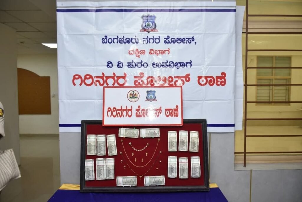 ಬೆಂಗಳೂರು ಮೇ 13 : ಬೆಂಗಳೂರು ನಗರದ ವಿವಿಧ ಪೋಲಿಸ ಠಾಣೆಗಳಲ್ಲಿ ವ್ಯಾಪ್ತಿಯ ಕಳ್ಳತನ ಪ್ರಕರಣಗಳನ್ನು ಭೇದಿಸಿ ಆರೋಪಿಗಳ ಮತ್ತು ಪ್ರಕರಣದ ಮಾಧ್ಯಮಗೋಷ್ಠಿಯಲ್ಲಿ ಬೆಂಗಳೂರು ನಗರ ಪೊಲೀಸ್ ಆಯುಕ್ತರಾದ ಬಿ. ದಯಾನಂದ ಅವರು, ಗಿರಿನಗರ ಪೊಲೀಸ್ ಠಾಣಾ ವ್ಯಾಪ್ತಿಯಲ್ಲಿ, ಚಿನ್ನಾಭರಣ ಮತ್ತು ನಗದು ಕಳವು ಆರೋಪದಡಿ ಮನೆಕೆಲಸದಾಕೆಯನ್ನು ಬಂಧಿಸಿದ ಬಗ್ಗೆ ಮಾಹಿತಿ ನೀಡಿದರು, ಆರೋಪಿತೆಯಿಂದ ಒಟ್ಟು 48.62 ಗ್ರಾಂ ಚಿನ್ನಾಭರಣ ಮತ್ತು ₹3.86 ಲಕ್ಷ ನಗದು ಸೇರಿದಂತೆ, ಒಟ್ಟು ₹8.47 ಲಕ್ಷ ಮೌಲ್ಯದ ವಸ್ತುಗಳನ್ನು ವಶಪಡಿಸಿಕೊಳ್ಳಲಾಗಿದೆ. ನಾಗರಿಕರು, ಮನೆಕೆಲಸಗಾರರನ್ನು ನೇಮಕ ಮಾಡಿಕೊಳ್ಳುವ ಮುನ್ನ ಅವರ ಹಿನ್ನೆಲೆಯನ್ನು ತಪ್ಪದೇ ಪರಿಶೀಲಿಸಬೇಕು. ಹಾಗೂ ಬೆಲೆ ಬಾಳುವ ವಸ್ತುಗಳನ್ನು ಮನೆಯಲ್ಲಿ ಸುರಕ್ಷಿತವಾಗಿ ಇಡುವ ಬಗ್ಗೆ ಎಚ್ಚರಿಕೆ ವಹಿಸುವಂತೆ ನಗರ ಪೊಲೀಸ್ ಕೋರಿದೆ
