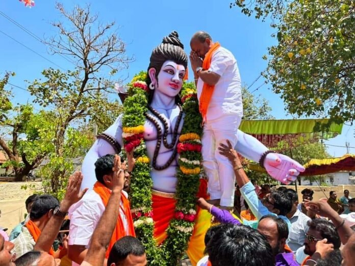ರಾಮನವಮಿಯಂದೇ ಬಿಜೆಪಿ ಶಾಸಕರಿಂದ ಎಡವಟ್ಟಾಗಿದ್ದು, ರಾಮನ ಪ್ರತಿಮೆ ತೊಡೆ ಮೇಲೆ ನಿಂತು ಮೂರ್ತಿ ಕೊರಳಿಗೆ ಹೂವಿನ ಹಾರ ಹಾಕಿದ್ದಾರೆ. ಬಸವಕಲ್ಯಾಣದಲ್ಲಿ ನಡೆದ ರಾಮನವಮಿ ಶೋಭಾ ಯಾತ್ರೆ ವೇಳೆ ಘಟನೆ ನಡೆದಿದೆ.