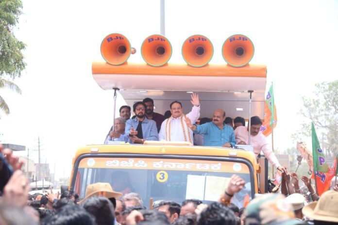 ಹಾವೇರಿ: ಶಿಗ್ಗಾವಿ ಕ್ಷೇತ್ರದಿಂದ ನಾಮಪತ್ರ ಸಲ್ಲಿಕೆ ಹಿನ್ನೆಲೆಯಲ್ಲಿ ಬುಧವಾರ ಸಿಎಂ ಬಸವರಾಜ ಬೊಮ್ಮಾಯಿ ಭರ್ಜರಿ ರೋಡ್ ಶೋ ನಡೆಸಿದ್ದಾರೆ. ಬಿಜೆಪಿ ರಾಷ್ಟ್ರೀಯ ಅಧ್ಯಕ್ಷ ಜೆ.ಪಿ.ನಡ್ಡಾ ಮತ್ತು ಚಿತ್ರನಟ ಸುದೀಪ್ ಒಡಗೂಡಿ ನಡೆಸಿದ ರೋಡ್ ಶೋ ನಲ್ಲಿ ಸಾವಿರಾರು ಮಂದಿ ಕಾರ್ಯಕರ್ತರು ಭಾಗವಹಿಸಿದ್ದರು.