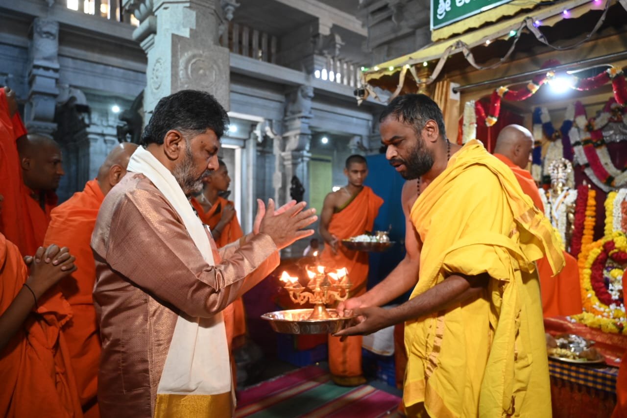 ದೇವರ ಮೊರೆ ಹೋಗಿರುವ ಡಿ.ಕೆ.ಶಿ ಇದೇ ವೇಳೆ ಆದಿಚುಂಚನಗಿರಿ ಸಂಸ್ಥಾನದ ಮಠಕ್ಕೆ ಭೇಟಿ ನೀಡಿ ನಿರ್ಮಲನಂದನಾಥ ಶ್ರೀಗಳನ್ನು ಭೇಟಿ ಮಾಡಿ ಆಶೀರ್ವಾದ ಪಡೆದ್ರು. ದೇವರೆದುರು ತಮ್ಮ ಇಚ್ಛೆಯನ್ನು ವ್ಯಕ್ತಪಡಿಸಿ ಹರಕೆ ಹೊತ್ತಿದ್ದೀರಾ ಎಂಬ ಪ್ರಶ್ನೆಗೆ ಉತ್ತರಿಸಿದ ಶಿವಕುಮಾರ್ ಇದು ನನ್ನ ಮತ್ತು ಭಗವಂತನ ನಡುವಿನ ವಿಚಾರ. ವರ ಕೇಳೋದು ನಾನು.. ಕೋಡೋನು ಅವನು ಎಂದು ಒಗಟಾಗಿ ಉತ್ತರಿಸಿದ್ರು.
