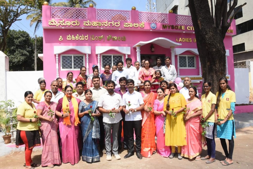 ಮೈಸೂರು: ಸಾಂಸ್ಕೃತಿಕ ರಾಜಧಾನಿ ಮೈಸೂರು ನಗರ ಪಿಂಕ್ ಶೌಚಾಲಯ ಉದ್ಘಾಟಸುವ ಮೂಲಕ ಮಹಿಳಾ ಸ್ನೇಹಿ ಎನಿಸಿಕೊಂಡಿದೆ. ಮೈಸೂರಿನ ಡಿ.ದೇವರಾಜ ಅರಸು ರಸ್ತೆ ಬಳಿಯ ಚಾಮುಂಡಿ ಅತಿಥಿ ಗೃಹದ ಹಿಂಭಾಗದ ದಿವಾನರ ರಸ್ತೆಯಲ್ಲಿ ಈ ಶೌಚಾಲಯ ನಿರ್ಮಾಣಗೊಂಡಿದೆ.