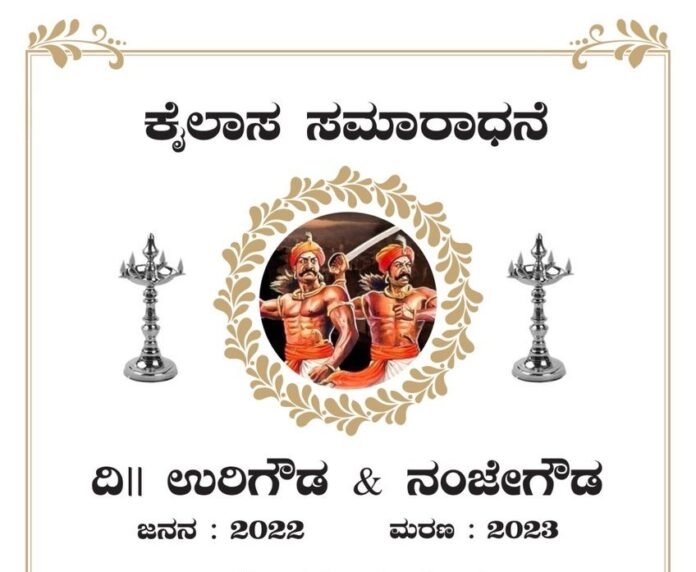 ಇನ್ನೊಂದು ಪೋಸ್ಟರಿನಲ್ಲಿ, “ಹುಟ್ಟಿದ ಮೇಲೆ ಎಲ್ಲರೂ ದಿವಂಗತರಾಗುತ್ತಾರೆ, ಆದರೆ, ಹುಟ್ಟದೆಯೂ ದಿವಂಗತರಾದವರು ಇಬ್ಬರೇ, ಉರಿಗೌಡ ಮತ್ತು ನಂಜೇಗೌಡ” ಎಂದು ಬರೆದು ಹಂಚಲಾಗಿದೆ.